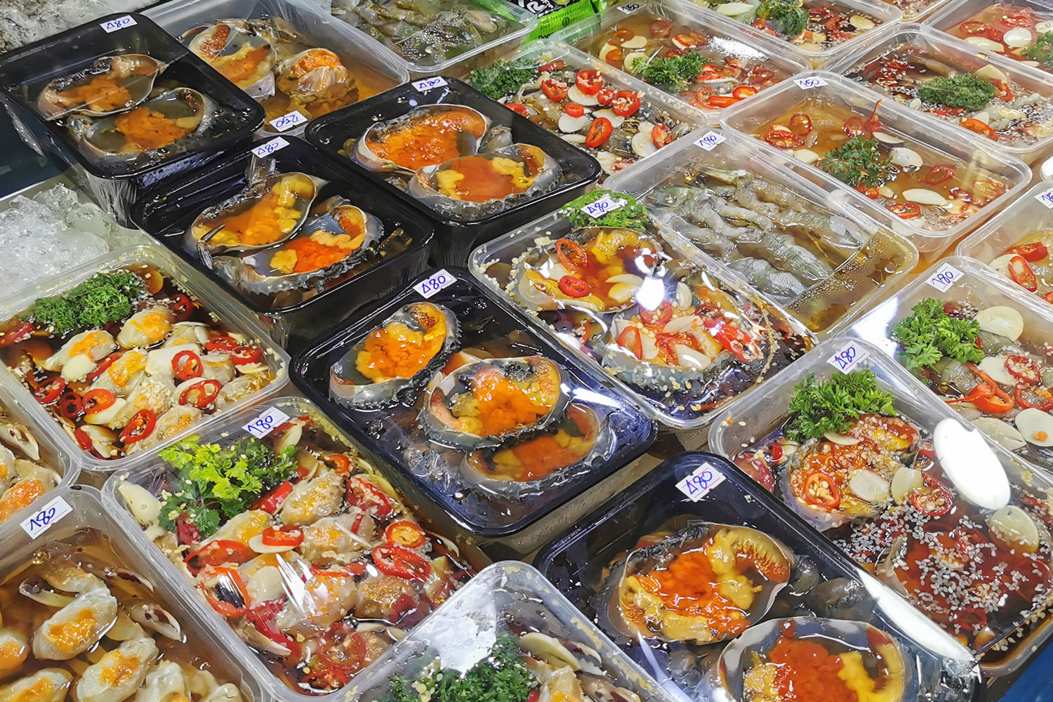 Sobald Du den Markt betrittst, wirst Du von einer Welle aus lebhaften Farben und intensiven Gerüchen begrüßt. Die Marktstände sind überfüllt mit den frischesten Meeresfrüchten, die Du Dir vorstellen kannst. Krabben, Garnelen, Muscheln, Austern und eine Vielzahl an Fischen – alles wird auf kunstvolle Weise präsentiert und wartet nur darauf, von Dir entdeckt zu werden. Jeder Stand erzählt seine eigene Geschichte, und Du wirst schnell merken, dass dieser Markt mehr als nur ein Ort zum Einkaufen ist – er ist eine Bühne für das tägliche Leben der Einheimischen.