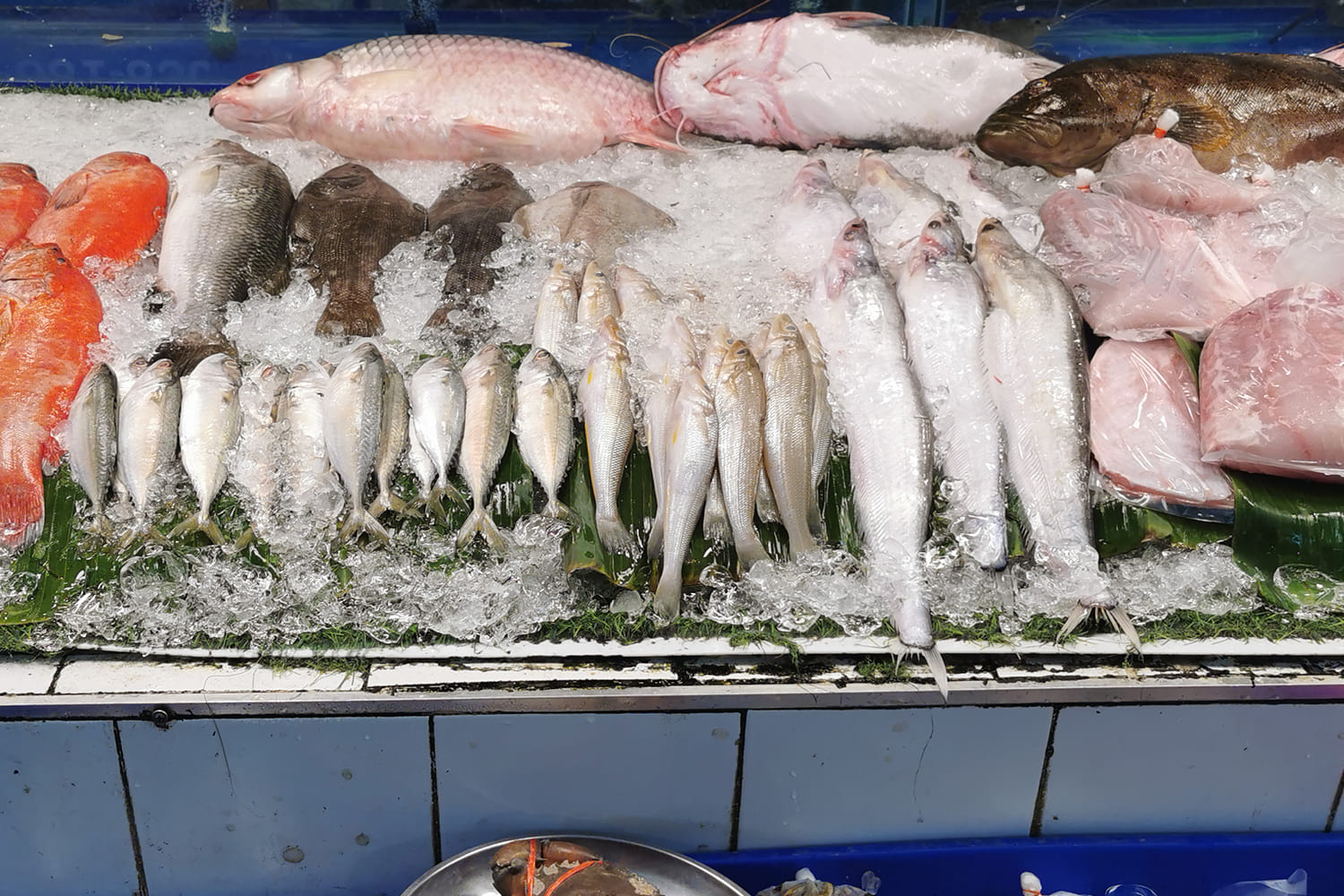 - Meeresfrüchte: Die Stände mit frischen Fischen und Meeresfrüchten sind ein echter Hingucker. Auf Eis gebettet liegen glänzende Fische, Garnelen, Krabben und Muscheln bereit zum Verkauf. Die Verkäufer schneiden geschickt die Fische und bereiten sie vor deinen Augen für den Verkauf vor. Der Geruch von frischem Meerwasser vermischt sich mit der kühlen Brise, die von den Ventilatoren herüberweht.