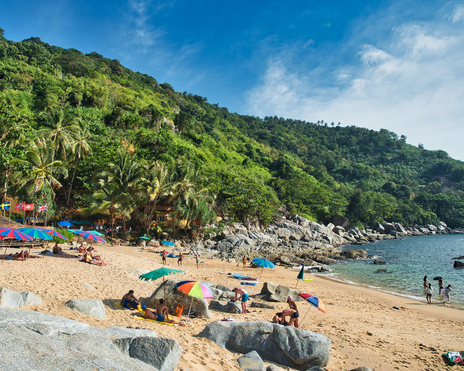 Wenn es eine Insel in Thailand gibt, die ein schlechtes Image hat, dann ist das wohl Phuket. Viele Menschen verbinden mit Phuket nämlich vor allem Sextourismus, Ladyboys und alte Männer mit Bierbäuchen und jungen Thai-Frauen. Weit gefehlt! Klar, auf Phuket gibt es tatsächlich ein berüchtigtes Rotlichtviertel und wer sich dort herumtreibt, wird genau die oben aufgezählten Sachen erleben, doch Phuket geht auch ganz anders: Ich verbinde mit Phukets vor allem traumhafte Strände und Buchten, nette Einheimische und ein sehr entspannter Vibe. Wer das erleben möchte, muss in den Süden von Phuket fahren – fernab des ganzen Trubels.