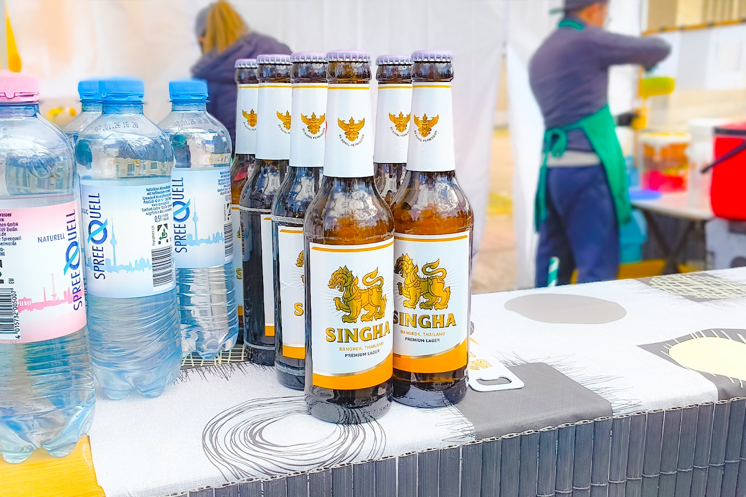 Übrigens: Wer lieber Süßes zum Mitnehmen will, wird mit Dampfbrötchen oder in Bananenblättern servierten Kokos-Desserts mehr als glücklich. Und wer Durst hat, findet Singha Bier direkt am Stand – Thailand to go!