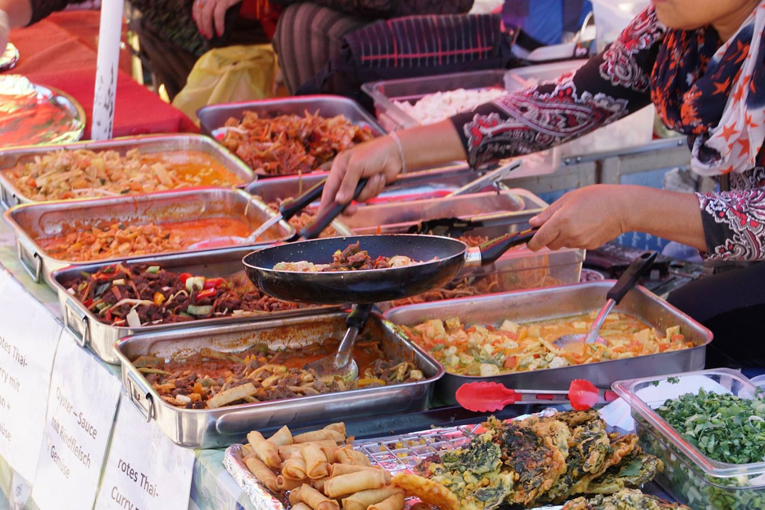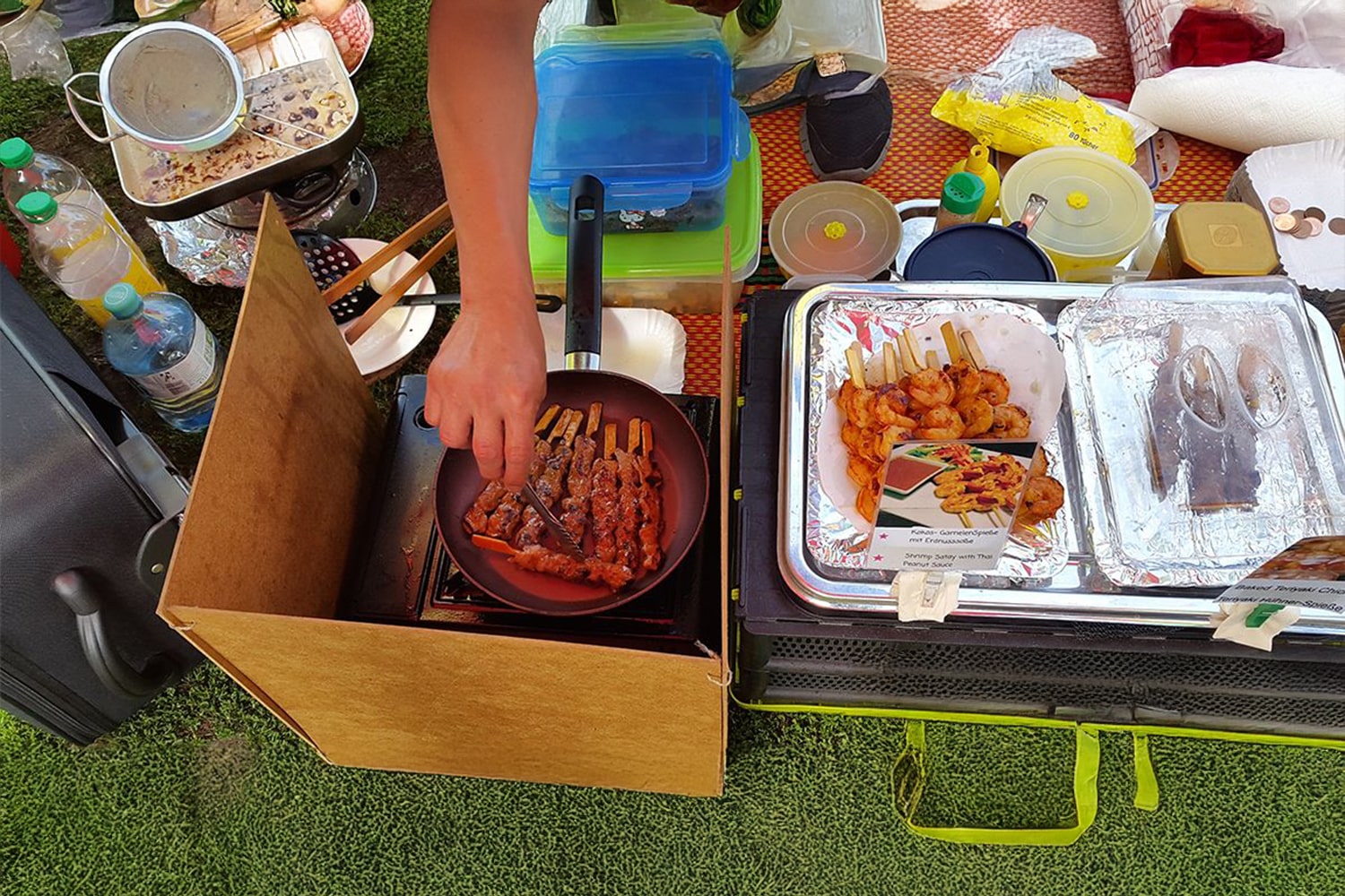 Es war kein gewöhnlicher Parktag. Hier saßt Du nicht einfach nur auf einer Decke und hast versucht, die Ameisen von Deinem Käsebrot fernzuhalten. Nein, hier hast Du Dein Pad Thai direkt aus der Hand einer thailändischen Oma bekommen, die die Kunst des Wok-Bratens mit einer Präzision beherrschte, die jeden Sternekoch vor Neid erblassen ließ. Diese Oma? Sie war eine Legende. Und Du? Du hattest keine Ahnung, was genau in der Sauce war, aber es war verdammt lecker. Der Thaipark war nicht nur ein Markt, er war eine Reise durch Thailand auf einer Wiese im Preußenpark. Und es gab alles. Jedes Gericht wurde von Menschen zubereitet, die nicht nur kochten, sondern ihre Kultur und Leidenschaft in jeden Teller legten. Es war wie ein kleines Bangkok mitten in Berlin – chaotisch, lebendig und voller Überraschungen.