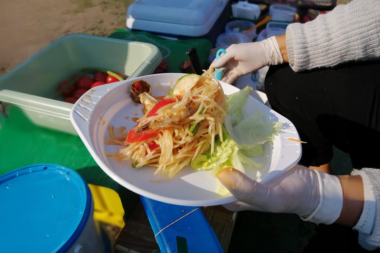 Der Thaipark war pure Magie. Chaos, aber auf die beste Art. Der Grillrauch vermischte sich mit den Stimmen der Verkäuferinnen, die in rasender Geschwindigkeit Zutaten auflisten konnten, von denen Du nicht einmal wusstest, dass sie existieren. „Nur ein bisschen Fischsoße“, hieß es – und Du hast es geglaubt, obwohl Dein Teller aussah, als würde ein ganzer Fischmarkt darauf Platz finden.