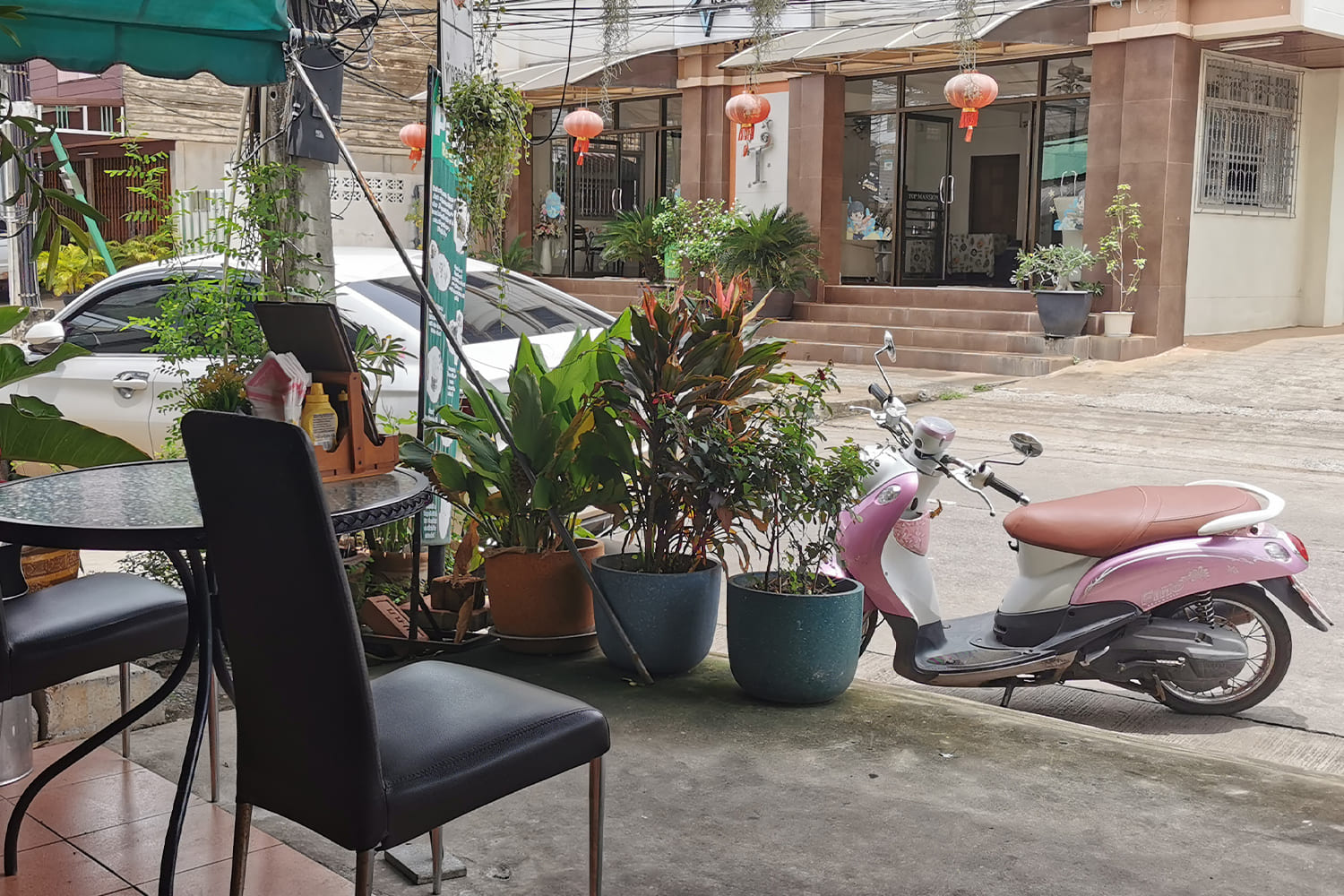 Obwohl es keine Klimaanlage gibt, sorgen Deckenventilatoren für eine angenehme Brise, die dir hilft, der thailändischen Hitze zu entkommen. Die Atmosphäre ist lebhaft und herzlich, auch wenn nur eine Mitarbeiterin etwas Deutsch spricht. Die freundliche Art der Mitarbeiterin und ihr Einsatz sorgen dafür, dass sich die Gäste wohlfühlen, auch wenn nicht alles perfekt ist.
