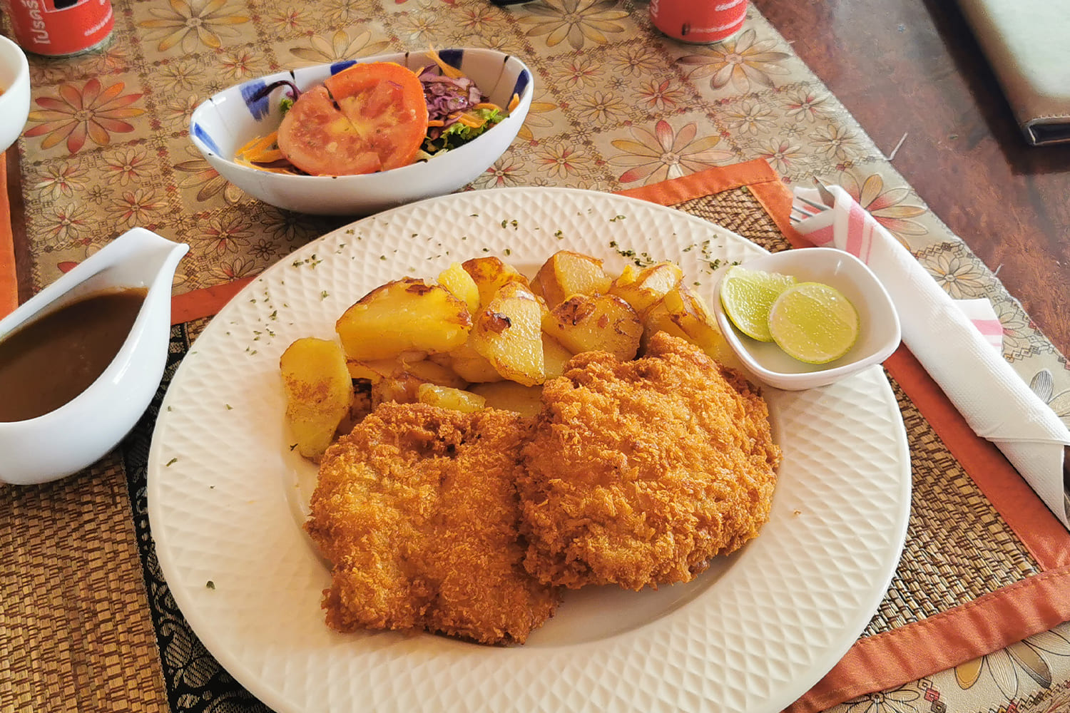 Die Schnitzelvariationen, wie das Rahmschnitzel mit Pommes und Salat, sind besonders beliebt. Die knusprige Panade und die cremige Sauce machen dieses Gericht zu einem echten Gaumenschmaus. Auch die Schweinelendchen mit Bratkartoffeln und Salat erfreuen sich großer Beliebtheit und sind ein Muss für jeden Fleischliebhaber.